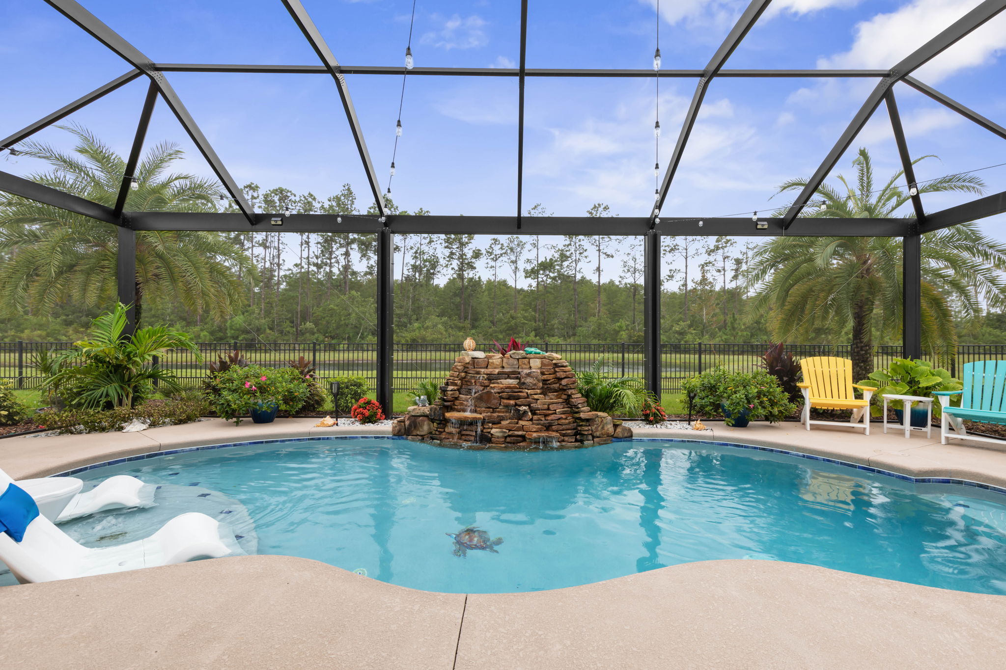 GATED LUXURY IN GRAND LANDINGS! SOAK IN THE SUNSHINE IN THIS CAPTIVATING POOL HOME ON SOUTH COOPERS HAWK! Designed for comfort and style, this 2018 built home combines countless elegant builder upgrades with a host of recent improvements—making it truly 'better than new'. Step inside to a bright, open layout perfect for entertaining or quiet evenings at home. The gourmet kitchen will delight any chef with its oversized granite island, 42-inch cabinets, walk-in pantry, stainless steel appliances, and tasteful backsplash. Spacious living and dining areas flow seamlessly to the true showstopper—your BACKYARD OASIS. This outdoor retreat boasts a SOLAR-HEATED saltwater pool (new pump and salt cell May 2025) with a generous sun shelf, soothing rock waterfall, a built-in umbrella holder and strings of lights perfect for a night time swim. Relax or entertain on the large covered porch, where Clearview Screening perfectly frames the tranquil lake and natural landscape beyond. The expansive primary suite is a private sanctuary, highlighted by extended bay windows that capture serene pool and nature views. Indulge in a double tray ceiling, two walk-in closets, and a spa-inspired bathroom with dual vanities, a gorgeous floor-to-ceiling tiled shower, and a soaking tub—the ultimate space to unwind. The 3 CAR GARAGE provides plenty of space for vehicles, a golf cart, water toys, tools, or even a golf simulator. Additional Features of the Home Include: Fenced-In Yard(added 2024), Irrigation System(added 2025), Freshly Painted in 2024, New Light Fixtures added 2024, Landscape Lighting, Large Laundry Room, Split Floor Plan, Rain Gutters, and so much more! Grand Landings is quickly becoming one of Palm Coast most desirable gated communities and features: NO CDD Fee, Low HOA($100 per month), Golf Cart Friendly, Zero-Entry Community Pool, Fitness Room, Dog Park, Playground, Underground Utilities and Miles of Sidewalks to walk or bike on. Great location: close to schools, shopping, golf courses, hospitals and THE BEACH! Call to schedule a private tour today!